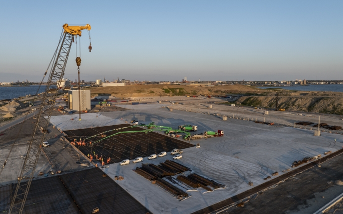 Projektet omfatter bl.a. jord- og afvandingsarbejder, ramning af 4.200 koblede pæle, der skal modvirke sætninger, støbning af 56.000 m2 selvbærende betonplade, kranskinner og gittermaster til belysning. Der bliver ligeledes etableret 325 lbm ny kaj inklusiv forstøbning og hammer. Som en del af projektet bliver det etableret en mandskabsbygning og en værkstedsbygning. Der etableres ligeledes en adgangsvej på 1,5 km.